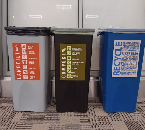 During the walkthrough, we were also informed of efforts to reduce the carbon footprint of the convention center events. Bins are placed throughout the convention center to encourage recycling by visitors.